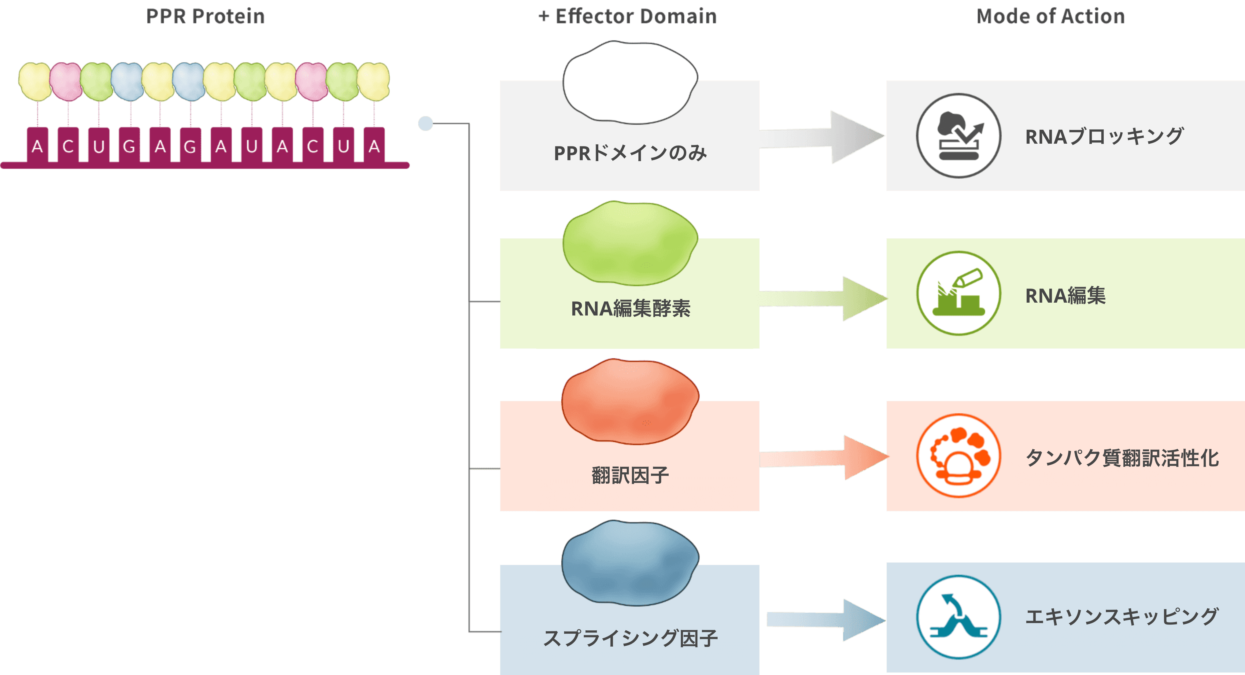 PPRプラットフォーム技術では、RNA結合と機能制御を兼ね備えた単一鎖タンパク質を作成することができます。