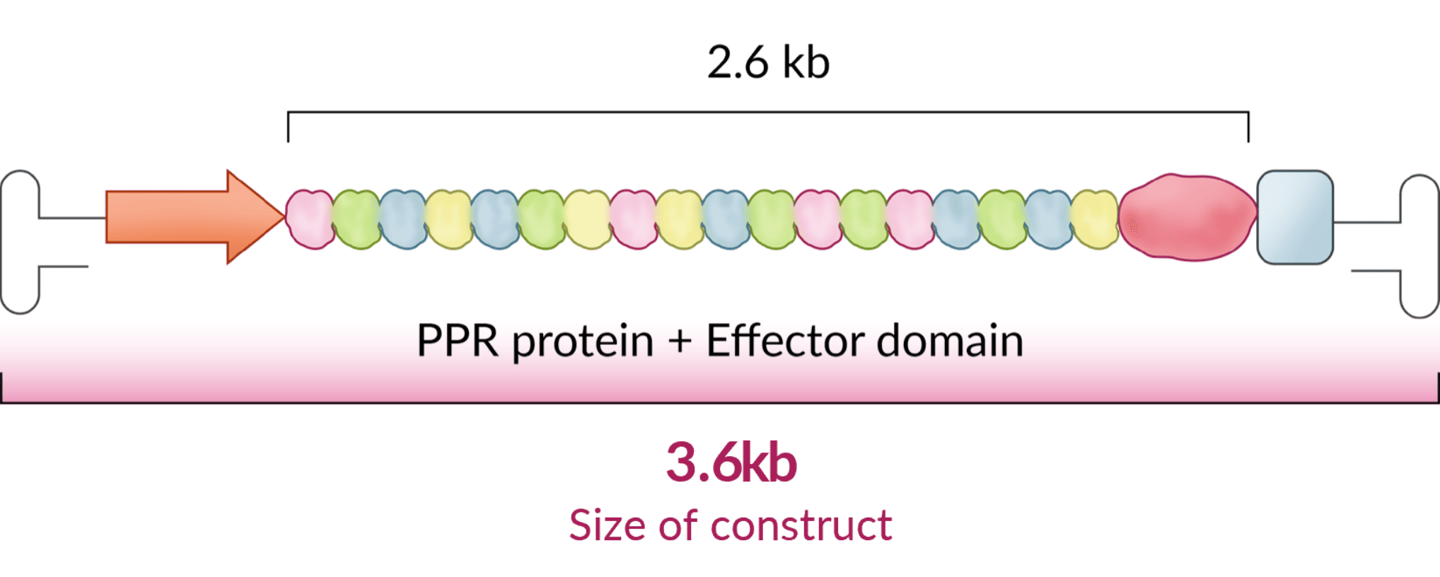 遺伝子として送達する際、PPRタンパク質の発現遺伝子はAAV(アデノ随伴ウイルス)ベクターの搭載サイズ制限を満たす4kb未満に収まり、他のDDS(ドラッグデリバリーシステム)にも適用可能です。